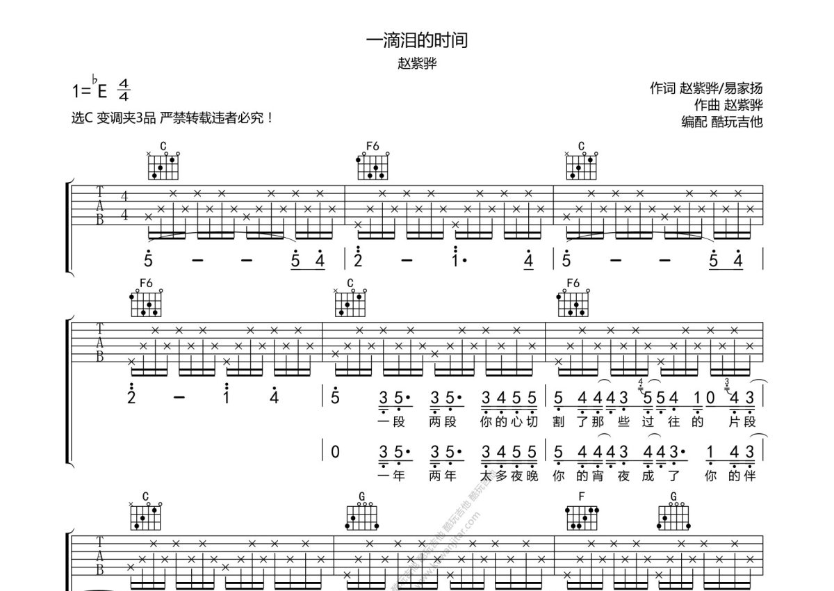 赵紫骅《一滴泪的时间》吉他谱 - C调弹唱六线谱
