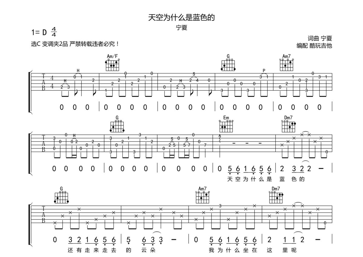 宁夏《天空为什么是蓝色的》吉他谱 - C调弹唱六线谱