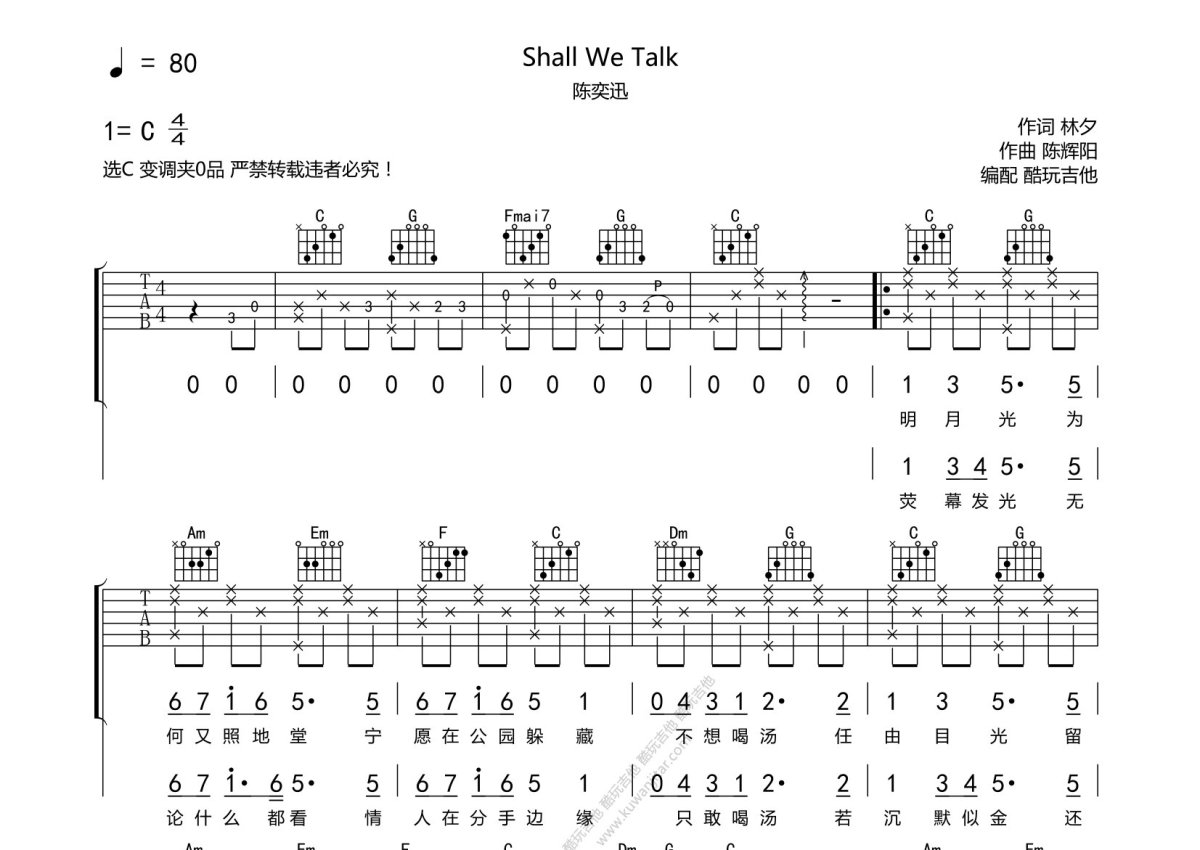 陈奕迅《shall we talk》吉他谱 - C调弹唱六线谱