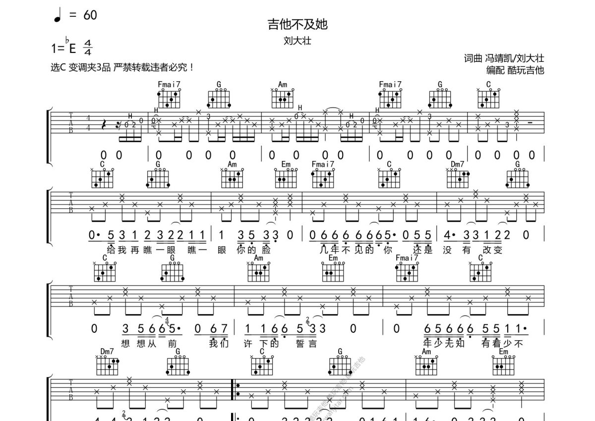 刘大壮《吉他不及她》吉他谱 - C调弹唱六线谱