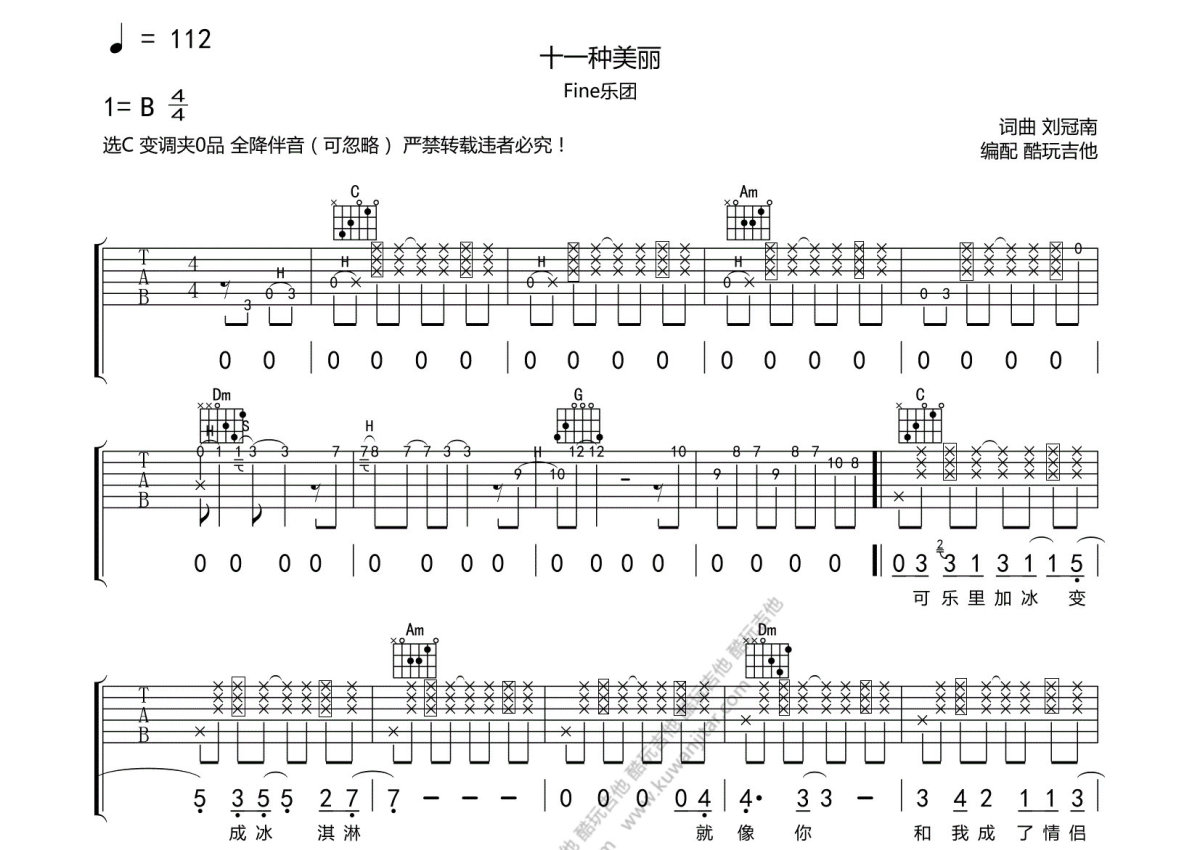 Fine乐团《十一种美丽》吉他谱 - C调弹唱六线谱