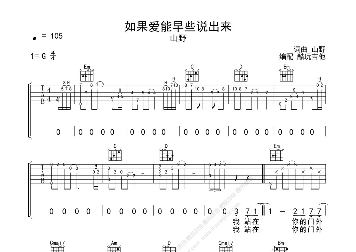 山野《如果爱能早些说出来》吉他谱 - G调弹唱六线谱