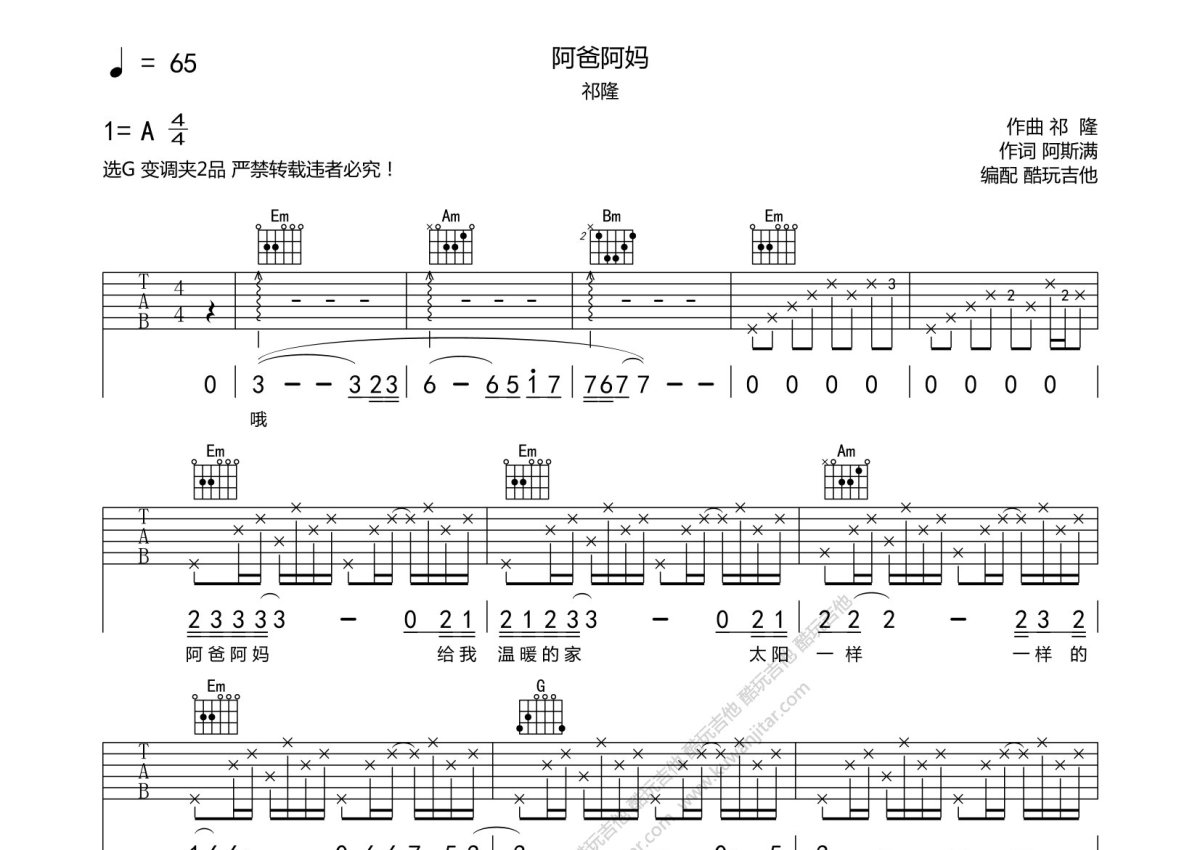 祁隆《阿爸阿妈》吉他谱 - G调弹唱六线谱