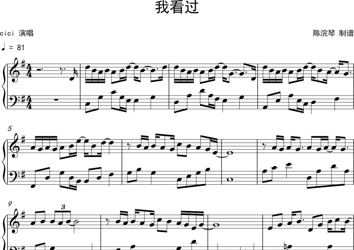 cici《我看过》钢琴谱