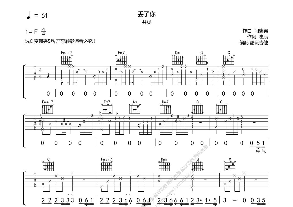 井胧《丢了你》吉他谱 - C调弹唱六线谱