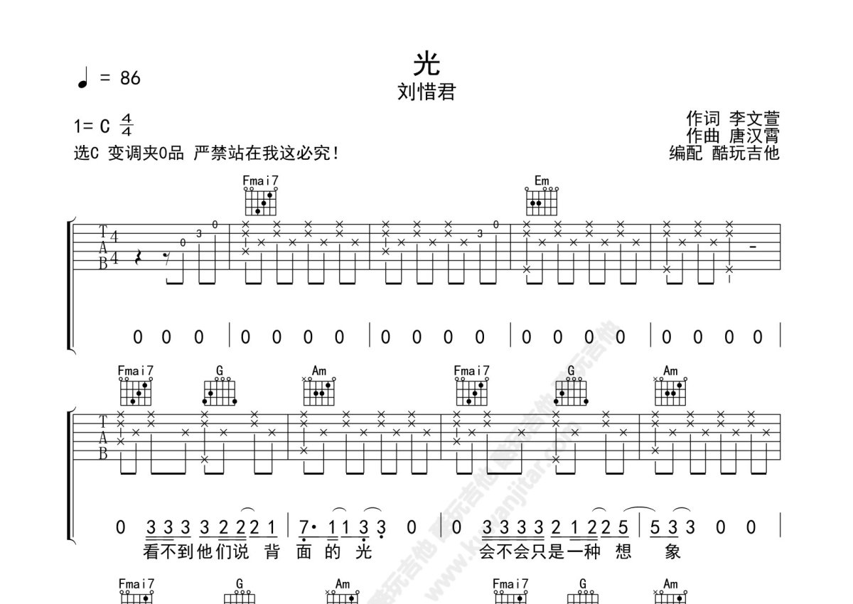 刘惜君《光》吉他谱 - C调弹唱六线谱