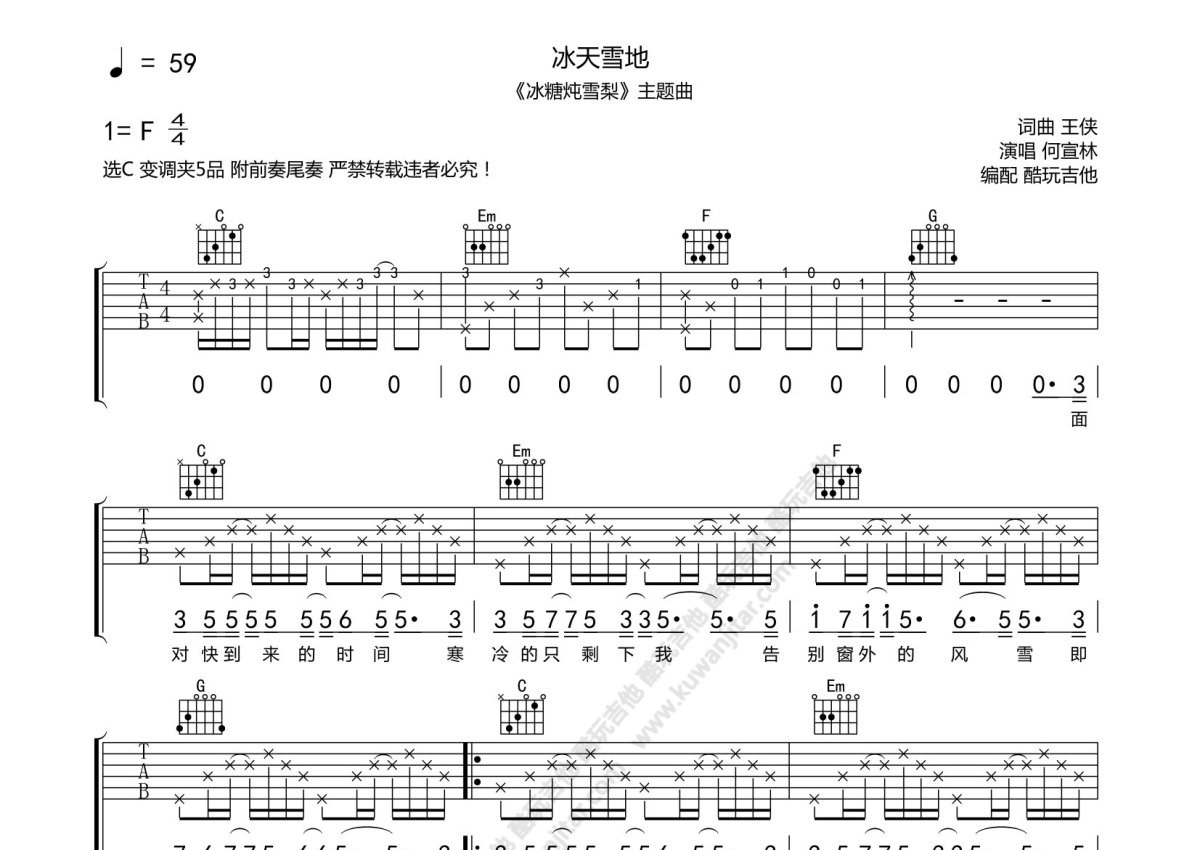 何宣林《冰天雪地》吉他谱 - C调弹唱六线谱