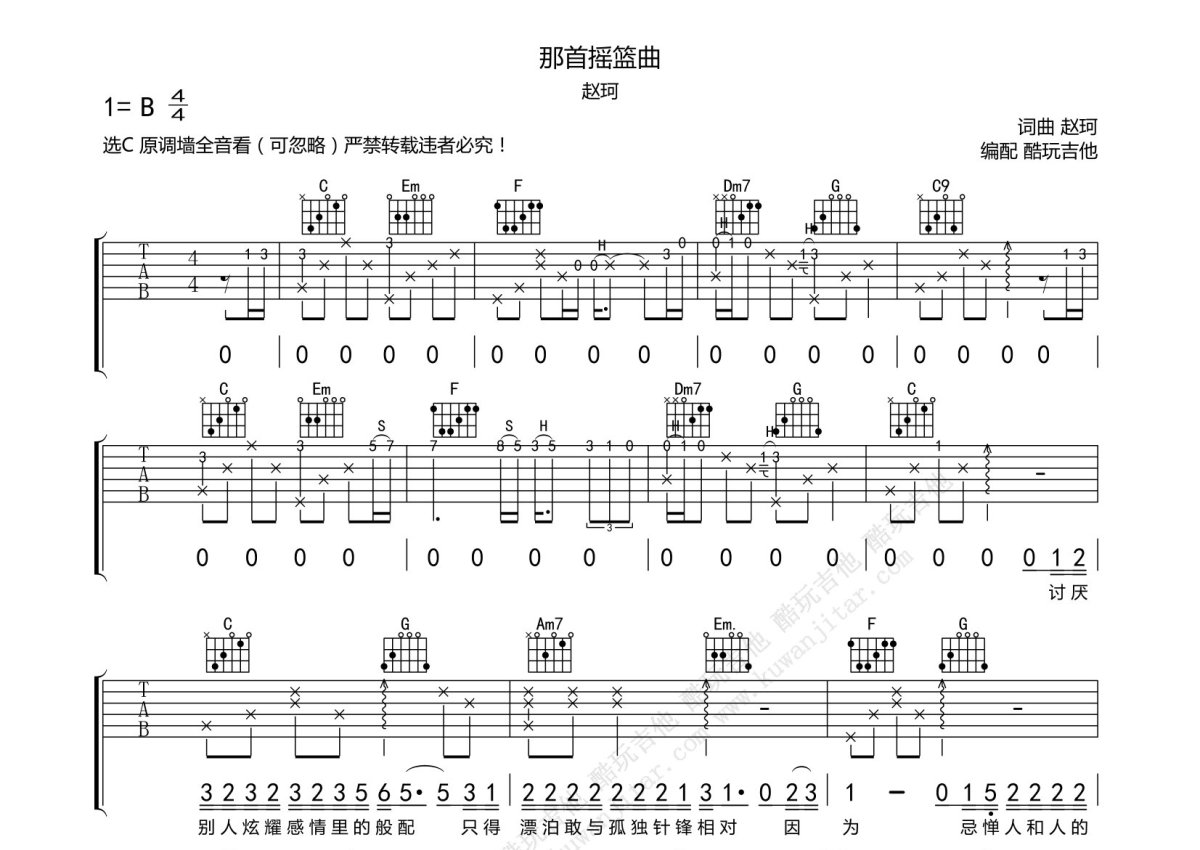 赵珂《那首摇篮曲》吉他谱 - C调弹唱六线谱 - 原版效果