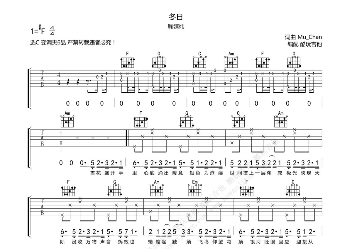 鞠婧祎《冬日》吉他谱 - C调弹唱六线谱