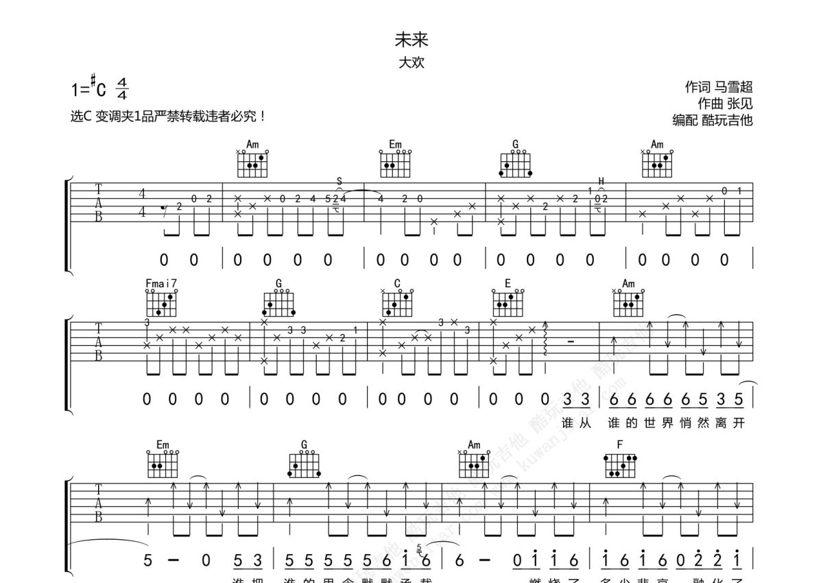 大欢《未来》吉他谱 - C调弹唱六线谱