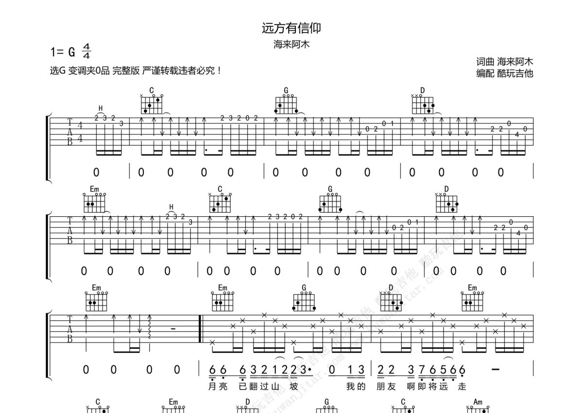 海来阿木《远方有信仰》吉他谱 - G调弹唱六线谱