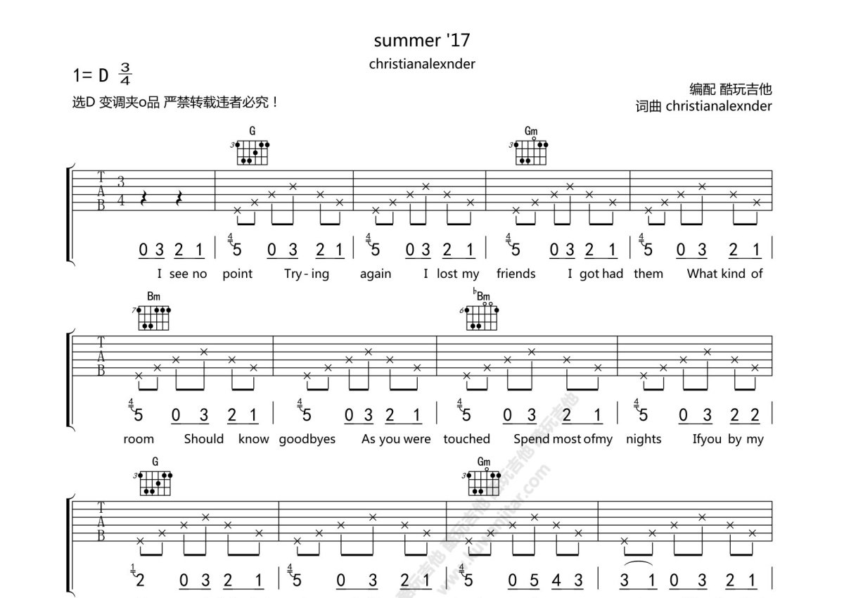 Christian Alexander《Summer'17》吉他谱 - D调弹唱六线谱