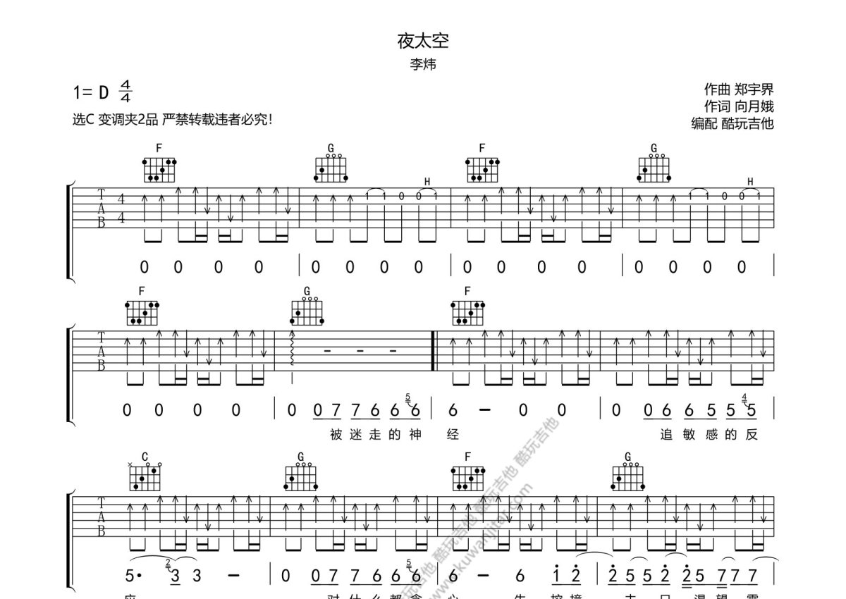 李炜《夜太空》吉他谱 - C调弹唱六线谱