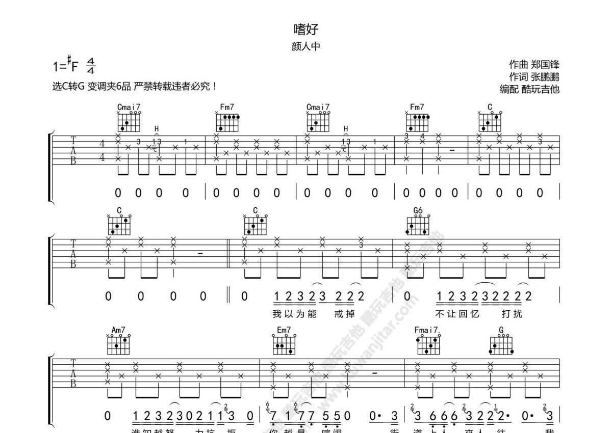 颜人中《嗜好》吉他谱 - C调弹唱六线谱