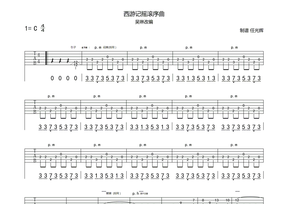 吴琳《西游记摇滚序曲》电吉他谱