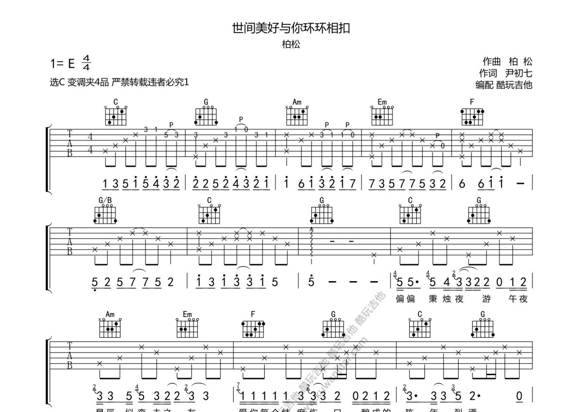 柏松《世间美好与环环相扣》吉他谱 - C调弹唱六线谱