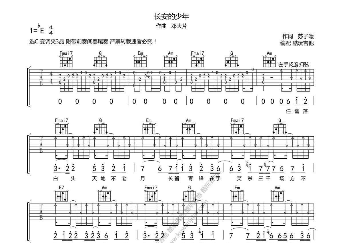小魏/国风堂《长安的少年》吉他谱 - C调弹唱六线谱