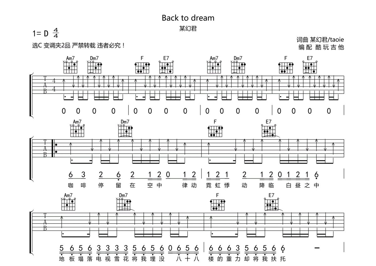 某幻君《Back to dream》吉他谱 - C调弹唱六线谱