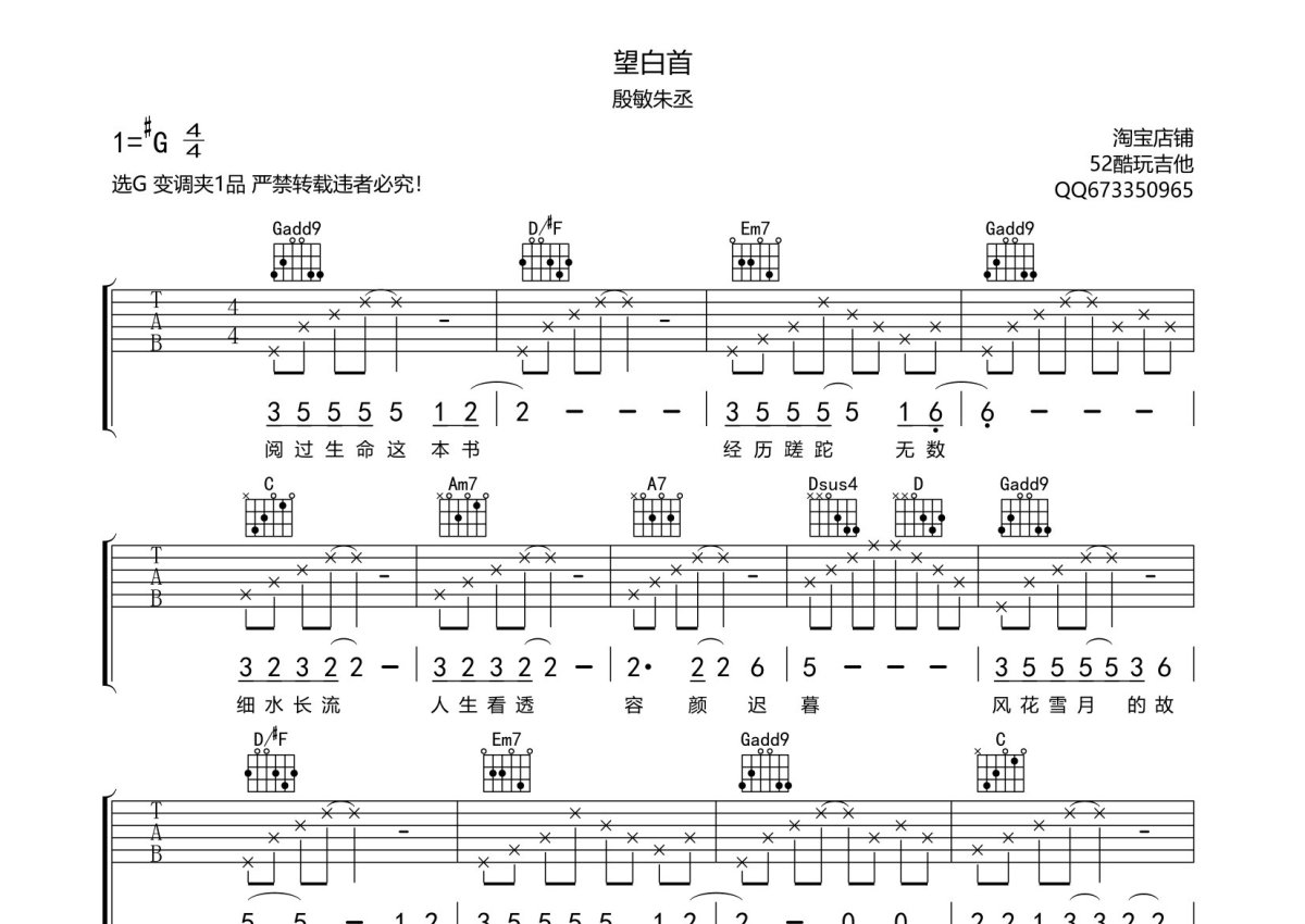 殷敏朱丞《望白首》吉他谱 - G调弹唱六线谱