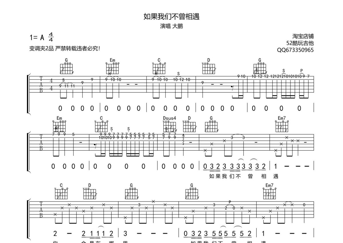 大鹏《如果我们不曾相遇》吉他谱 - G调弹唱六线谱