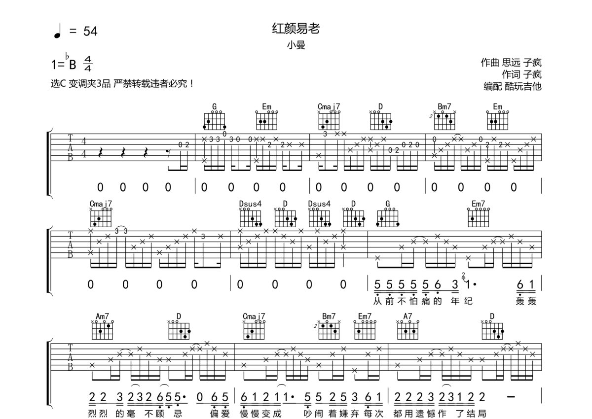 小曼《红颜易老》吉他谱 - G调弹唱六线谱