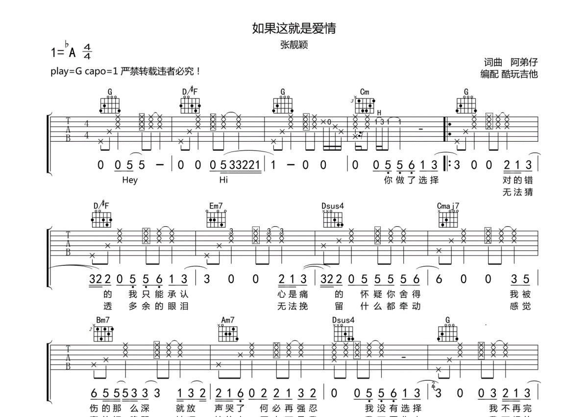 张靓颖《如果这就是爱情》吉他谱 - G调弹唱六线谱