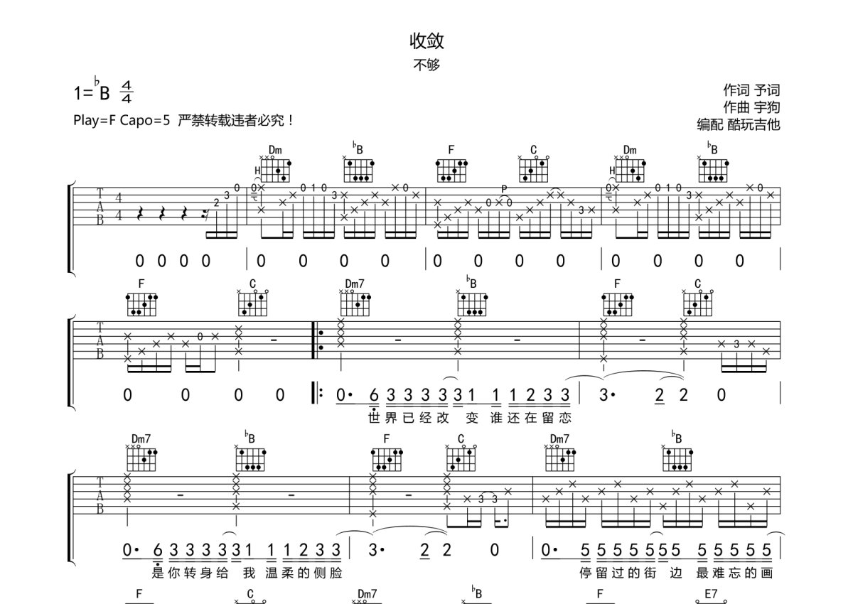 不够《收敛》吉他谱 - F调弹唱六线谱