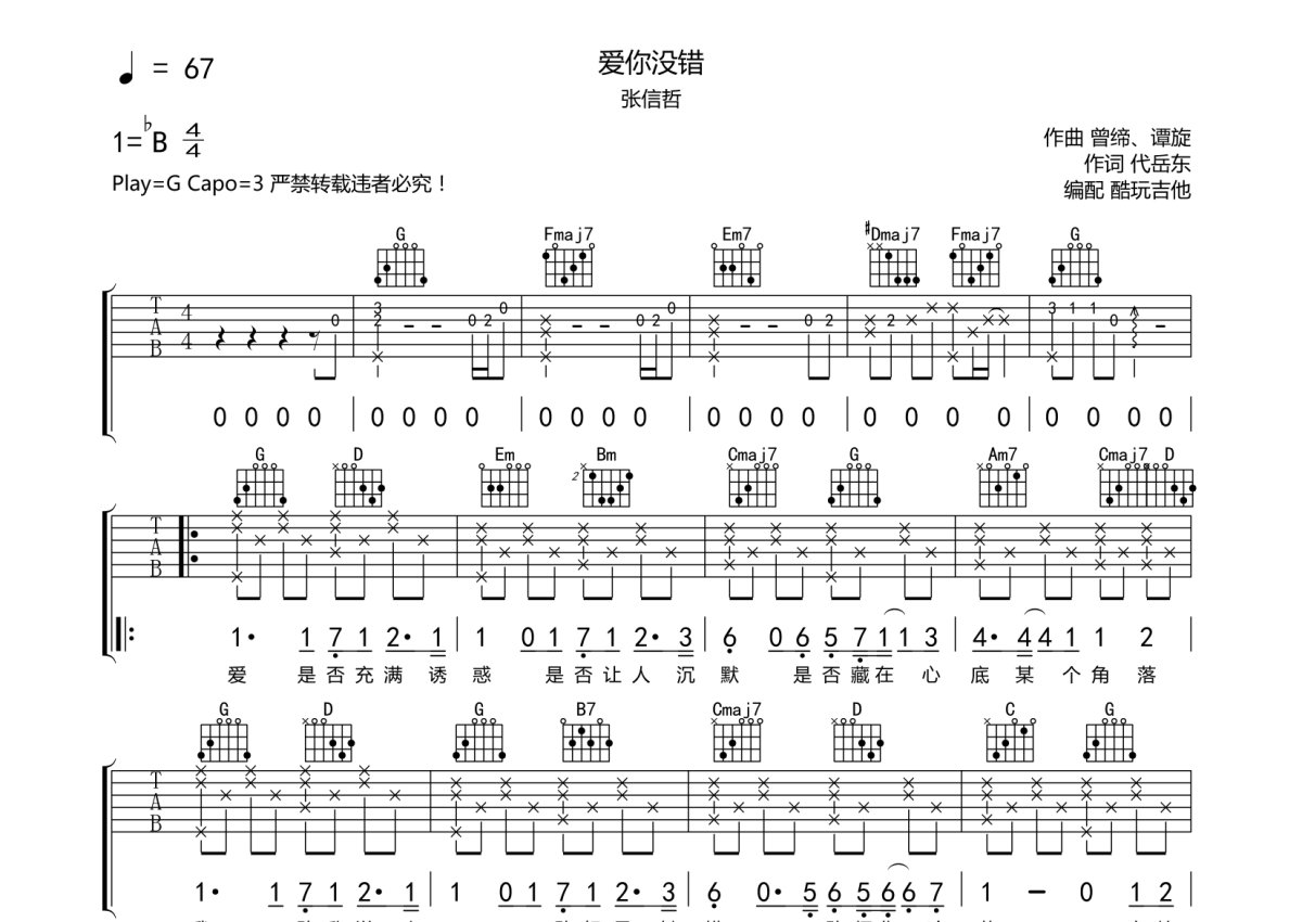 张信哲《爱你没错》吉他谱 - G调弹唱六线谱