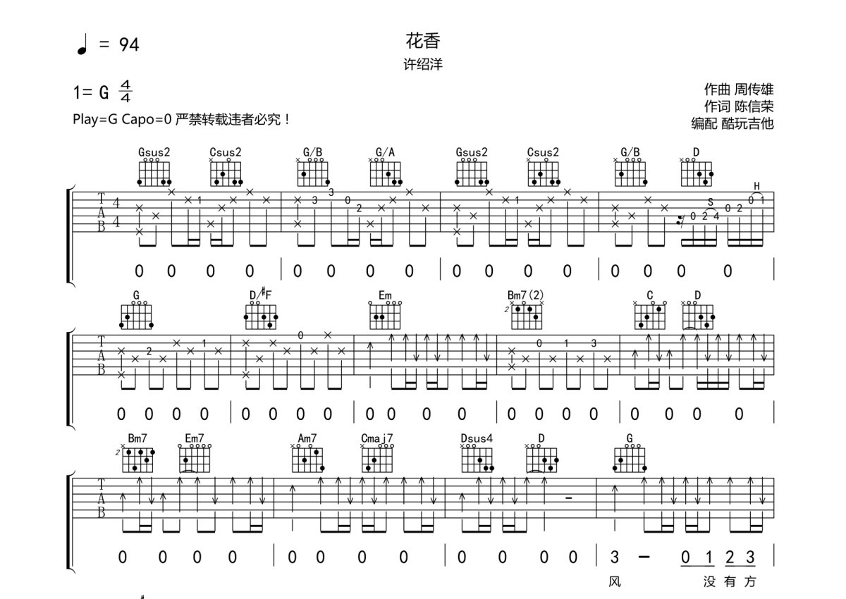 许绍洋《花香》吉他谱 - G调弹唱六线谱