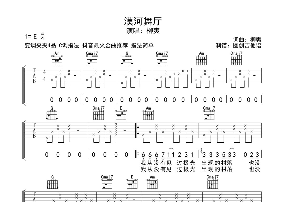 柳爽《漠河舞厅》吉他谱 - C调弹唱六线谱