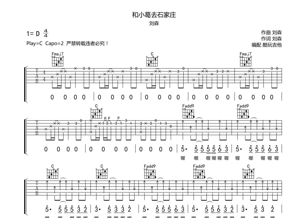刘森《和小葛去石家庄》吉他谱 - C调弹唱六线谱