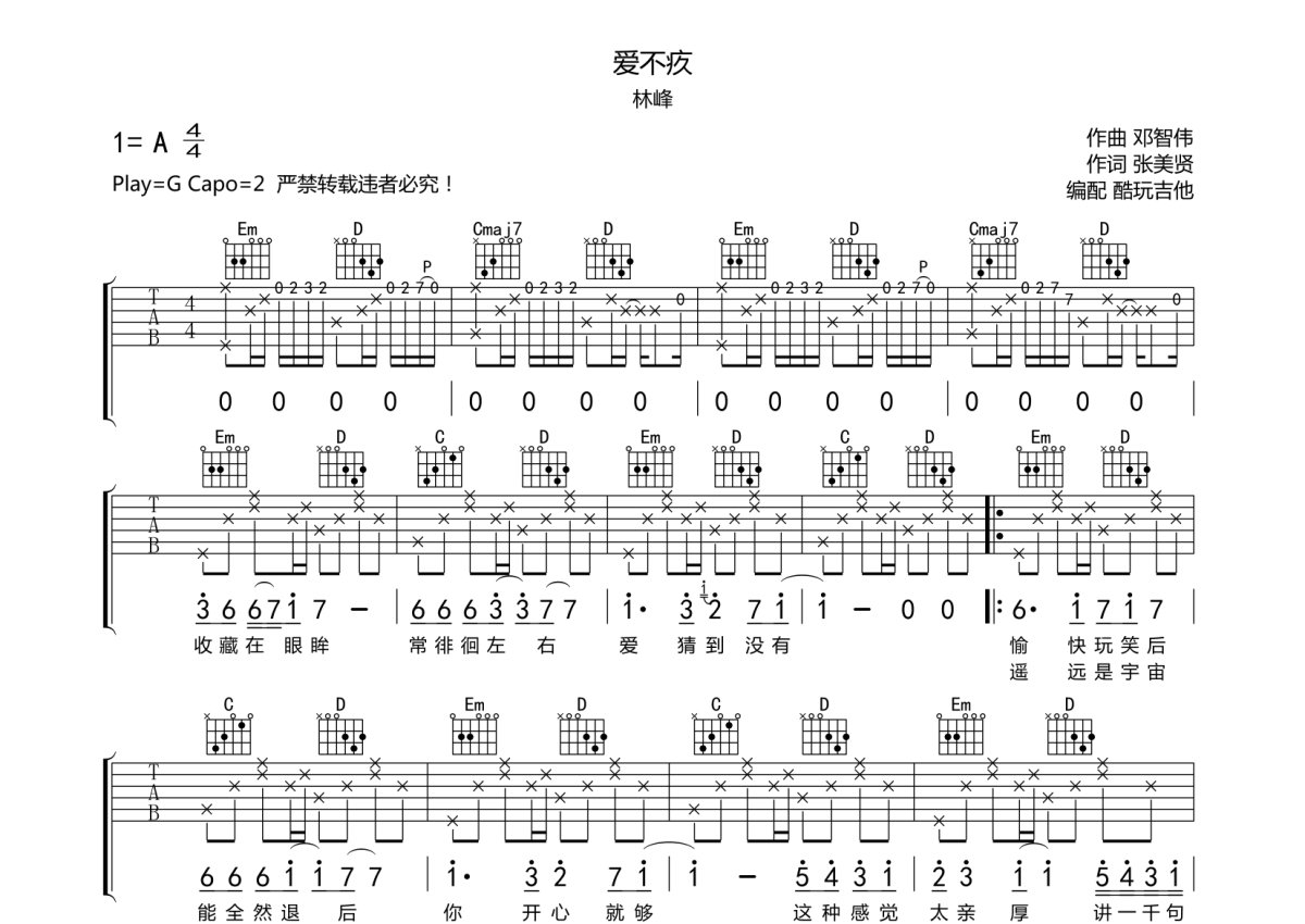 林峰《爱不疚》吉他谱 - G调弹唱六线谱