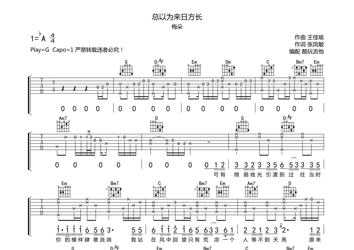 梅朵《总以为来日方长》吉他谱 - G调弹唱六线谱