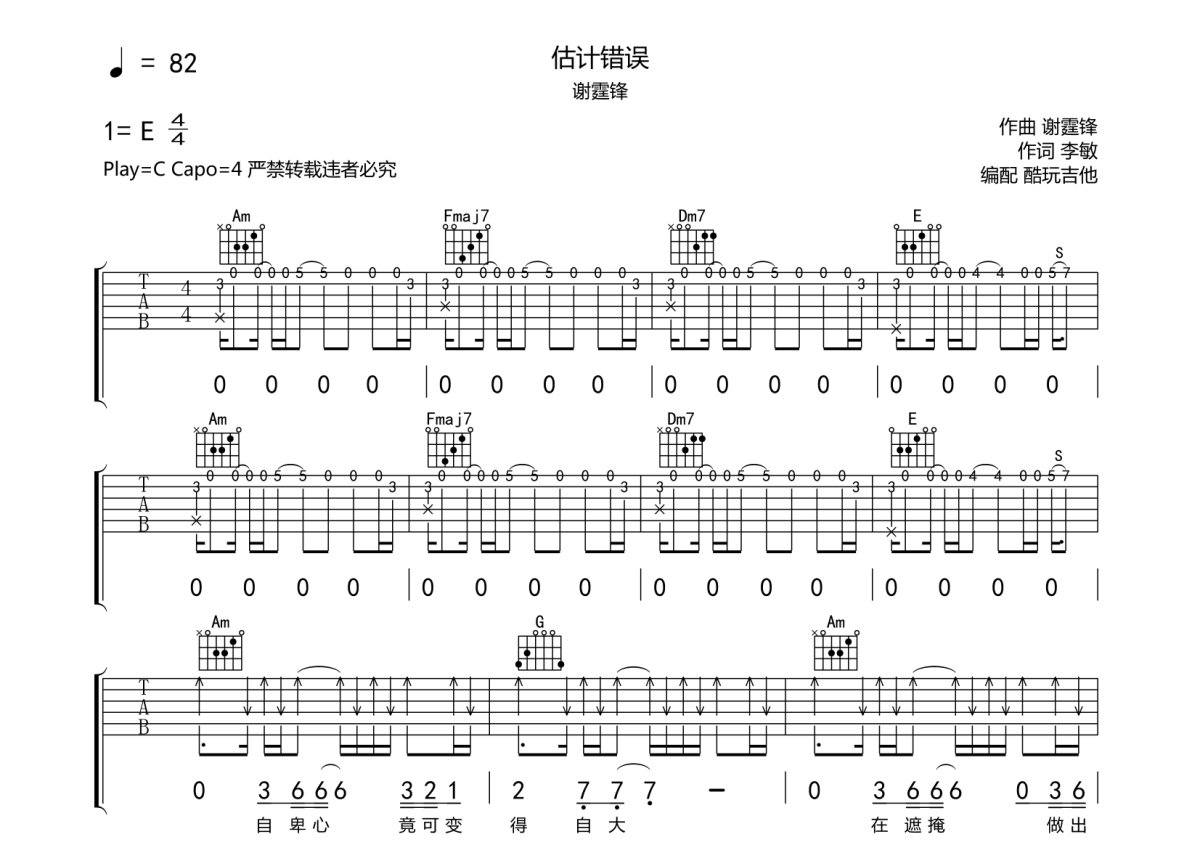 谢霆锋《估计错误》吉他谱 - C调弹唱六线谱