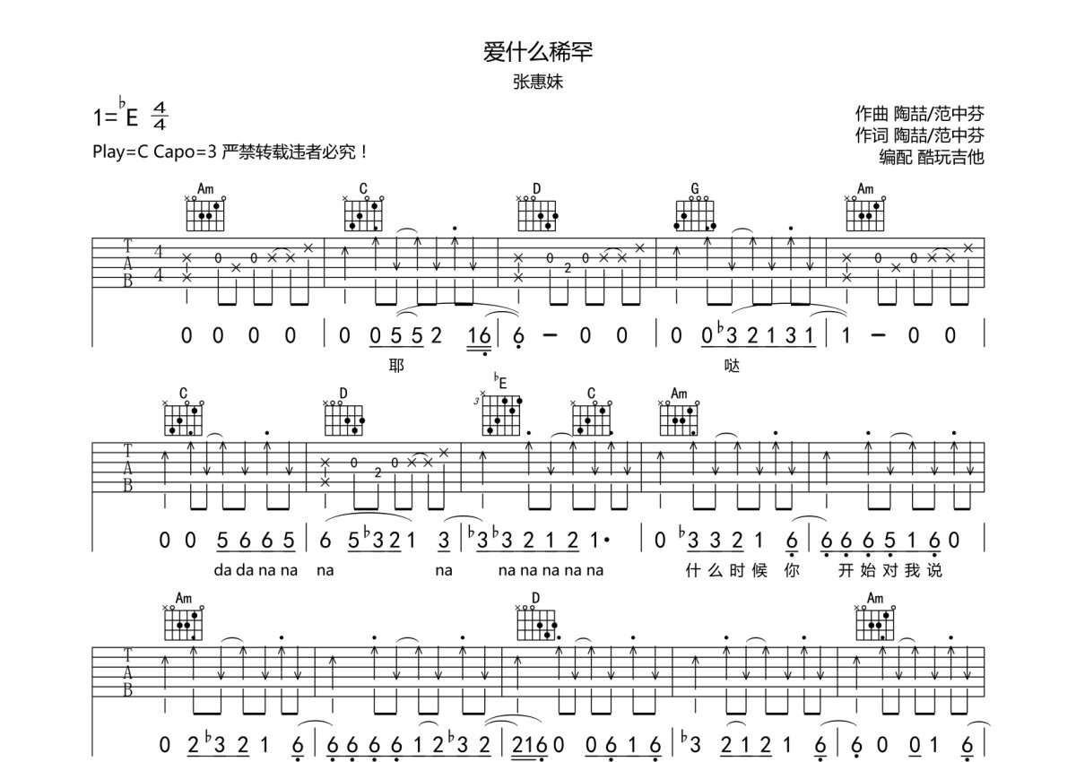 张惠妹《爱什么稀罕》吉他谱 - C调弹唱六线谱