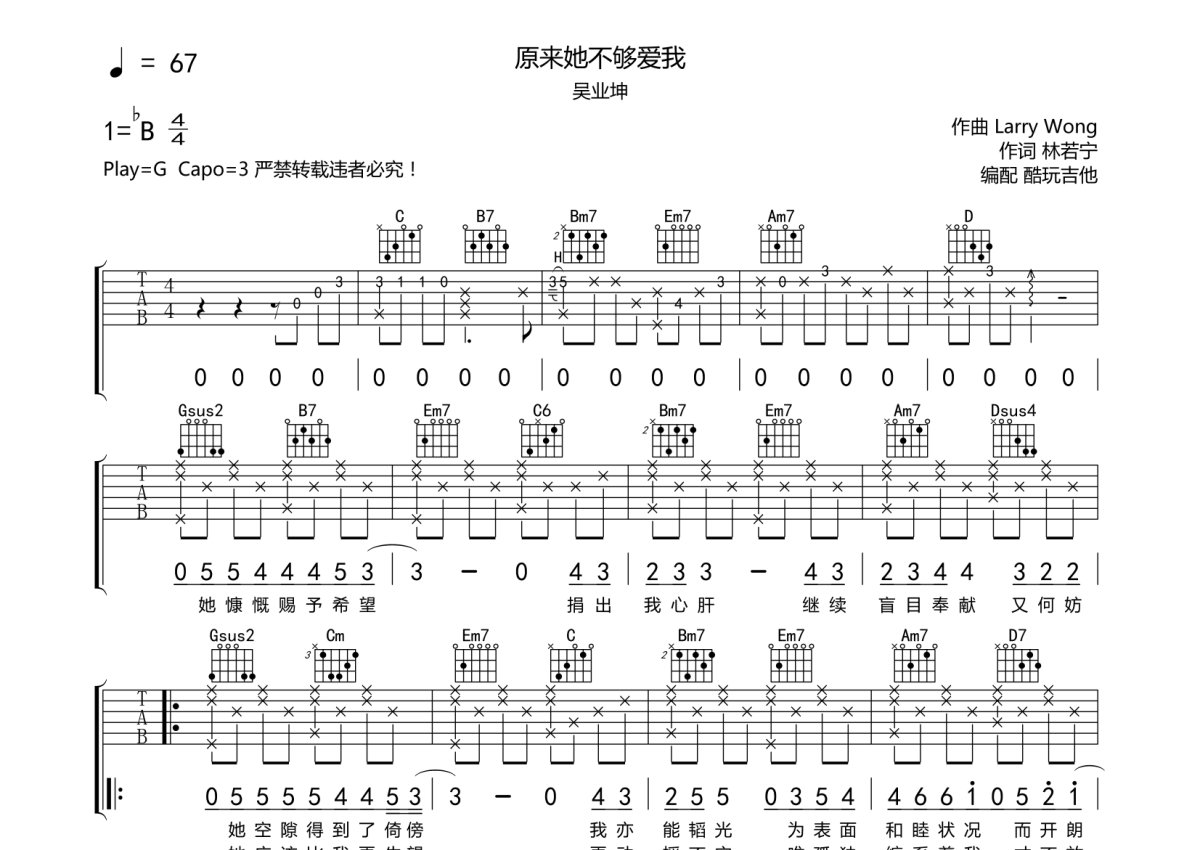 吴业坤《原来她不都爱我》吉他谱 - G调弹唱六线谱