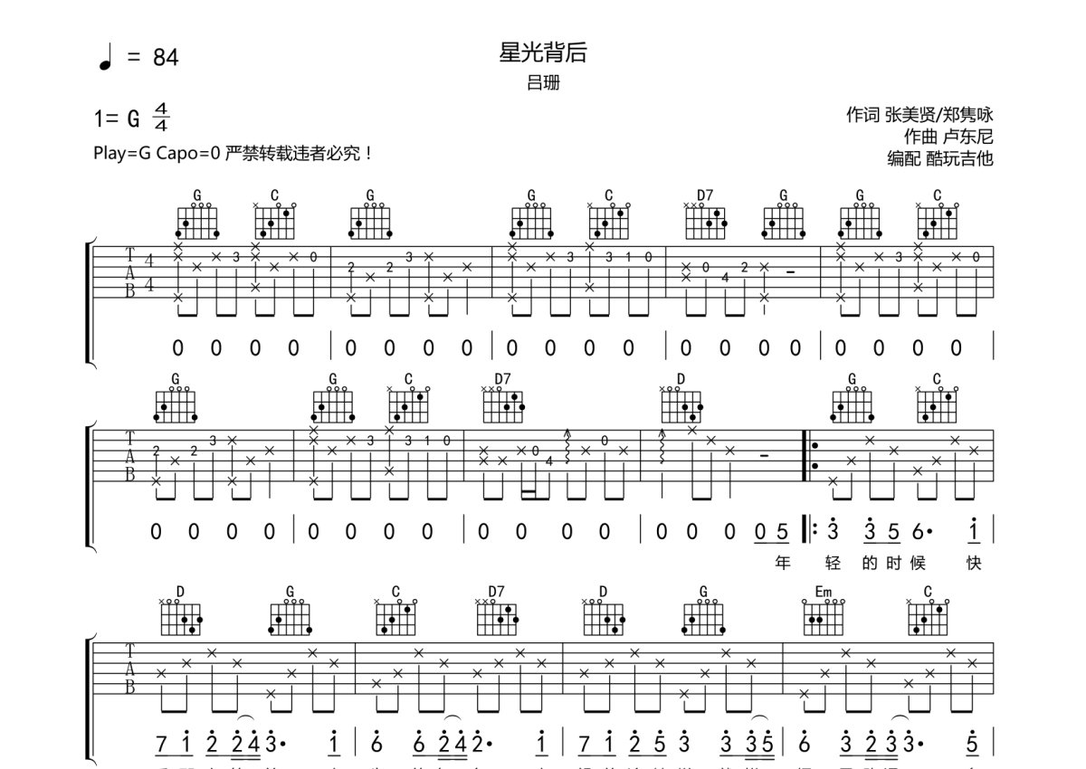 吕珊《星光背后》吉他谱 - G调弹唱六线谱