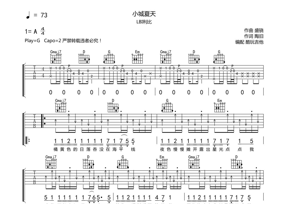 LBI利比《小城夏天》吉他谱 - G调弹唱六线谱