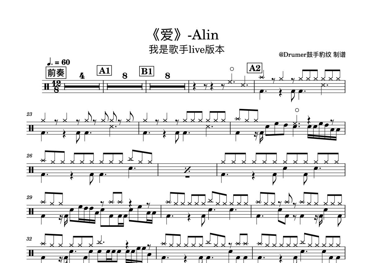 A-Lin《爱》鼓谱 - 架子鼓谱 - 我是歌手live