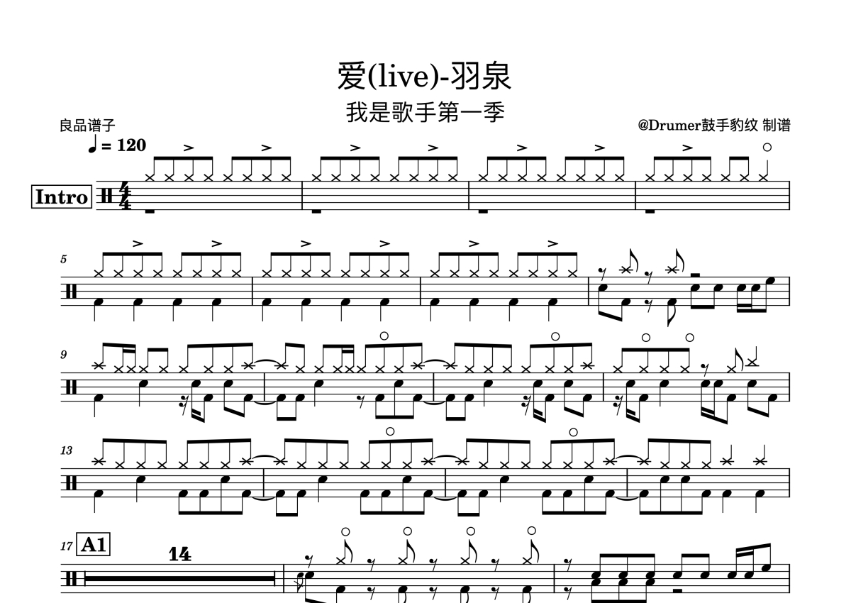 羽泉《爱》鼓谱 - 架子鼓谱 - 我是歌手