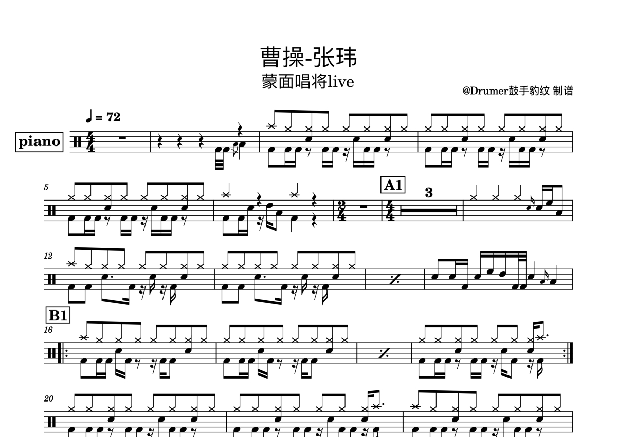 张玮《曹操》鼓谱 - 架子鼓谱 - (live)