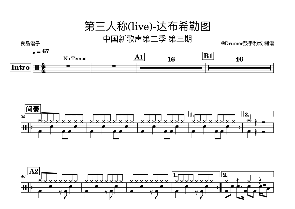 达布希勒图《第三人称》鼓谱 - 架子鼓谱 - 中国新歌声(live)