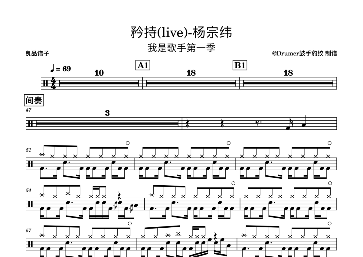 杨宗纬《矜持》鼓谱 - 架子鼓谱 - 我是歌手(live)