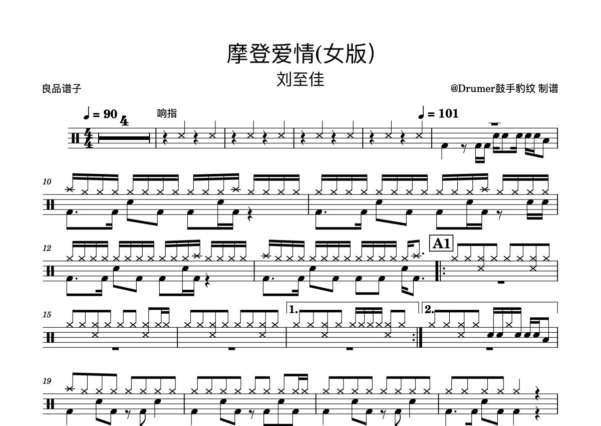 刘至佳《摩登爱情》鼓谱 - 架子鼓谱 - (女版)