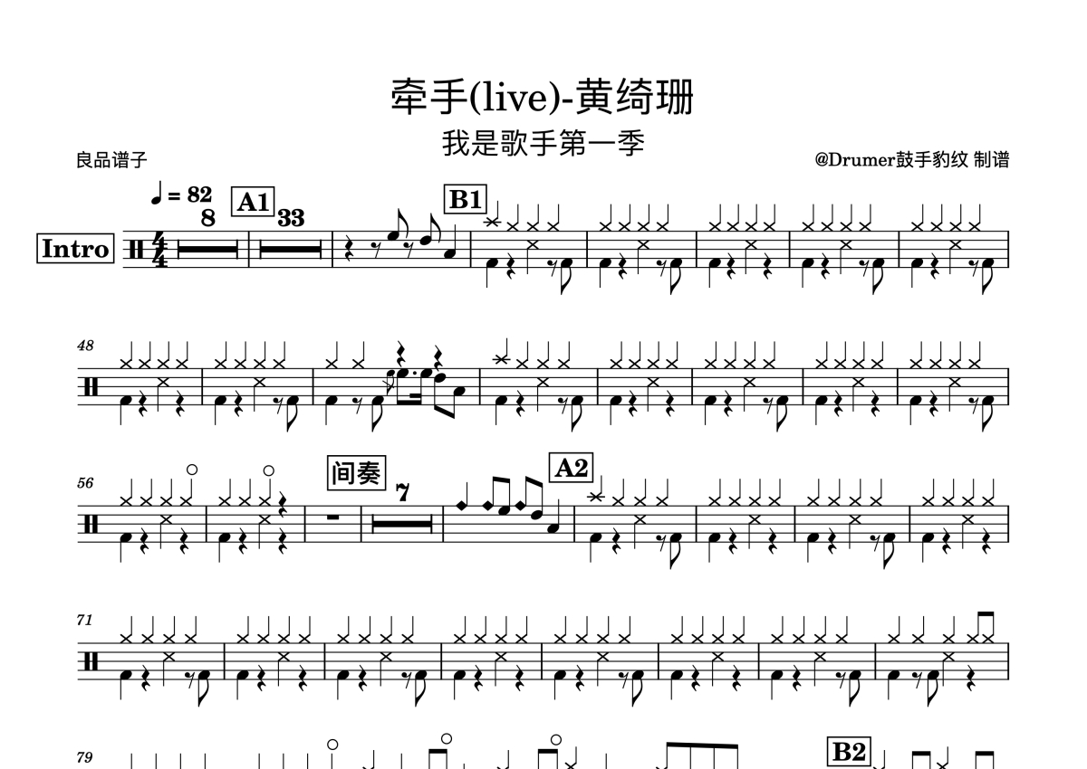黄绮珊《牵手》鼓谱 - 架子鼓谱 - 我是歌手live