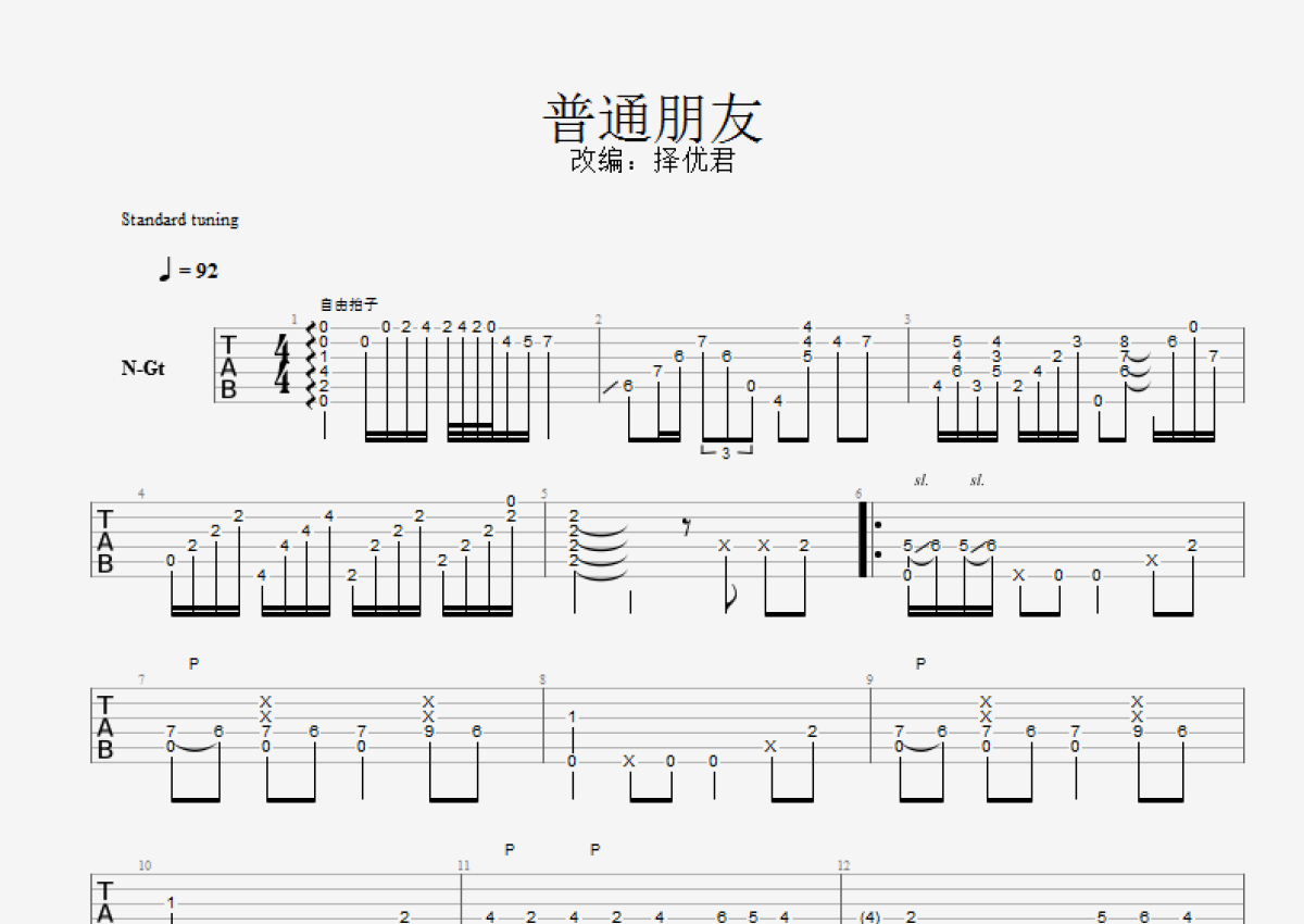 《普通朋友》是陶喆演唱的一首歌曲,精华版,本吉他谱采用的是E调指法编配,这份吉他谱共有两张高清图谱,图谱由 @择优君 编配上传,图谱使用六线谱编配,曲谱配备了相关的视频提供浏览,使用这份普通朋友吉他谱,可以让你更加方便地掌握这首歌曲的演奏技巧,快来尝试吧。陶喆《普通朋友》吉他谱_E调吉他独奏谱_精华版。