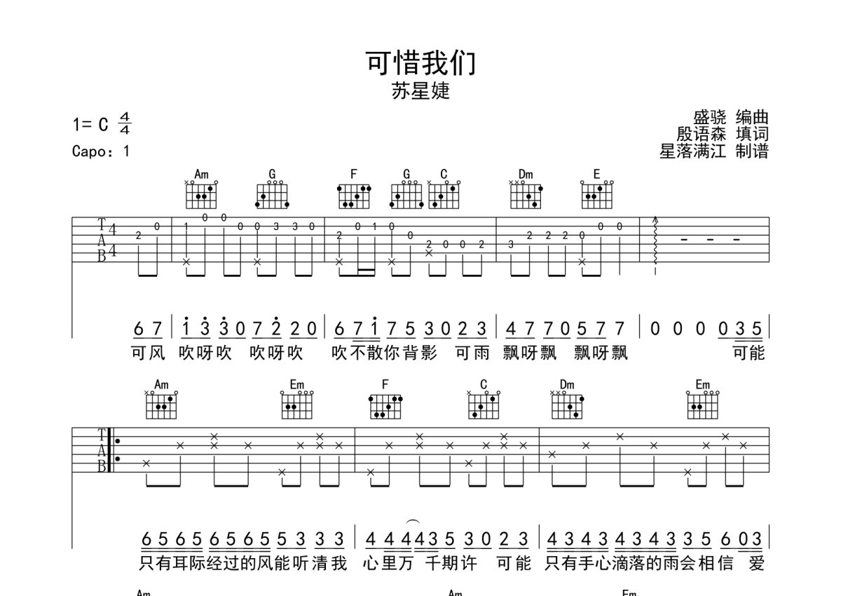 苏星婕《可惜我们》吉他谱 - C调弹唱六线谱