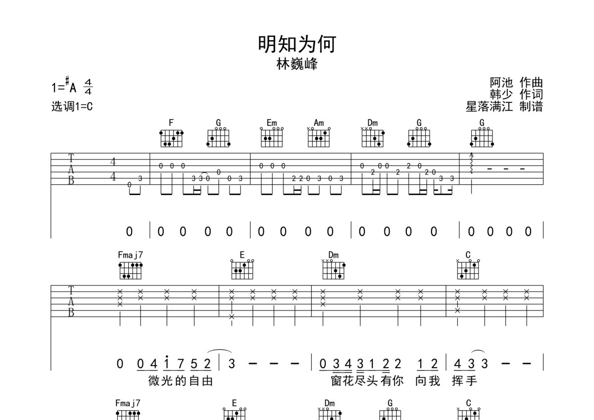 林巍峰《明知我们》吉他谱 - C调弹唱六线谱