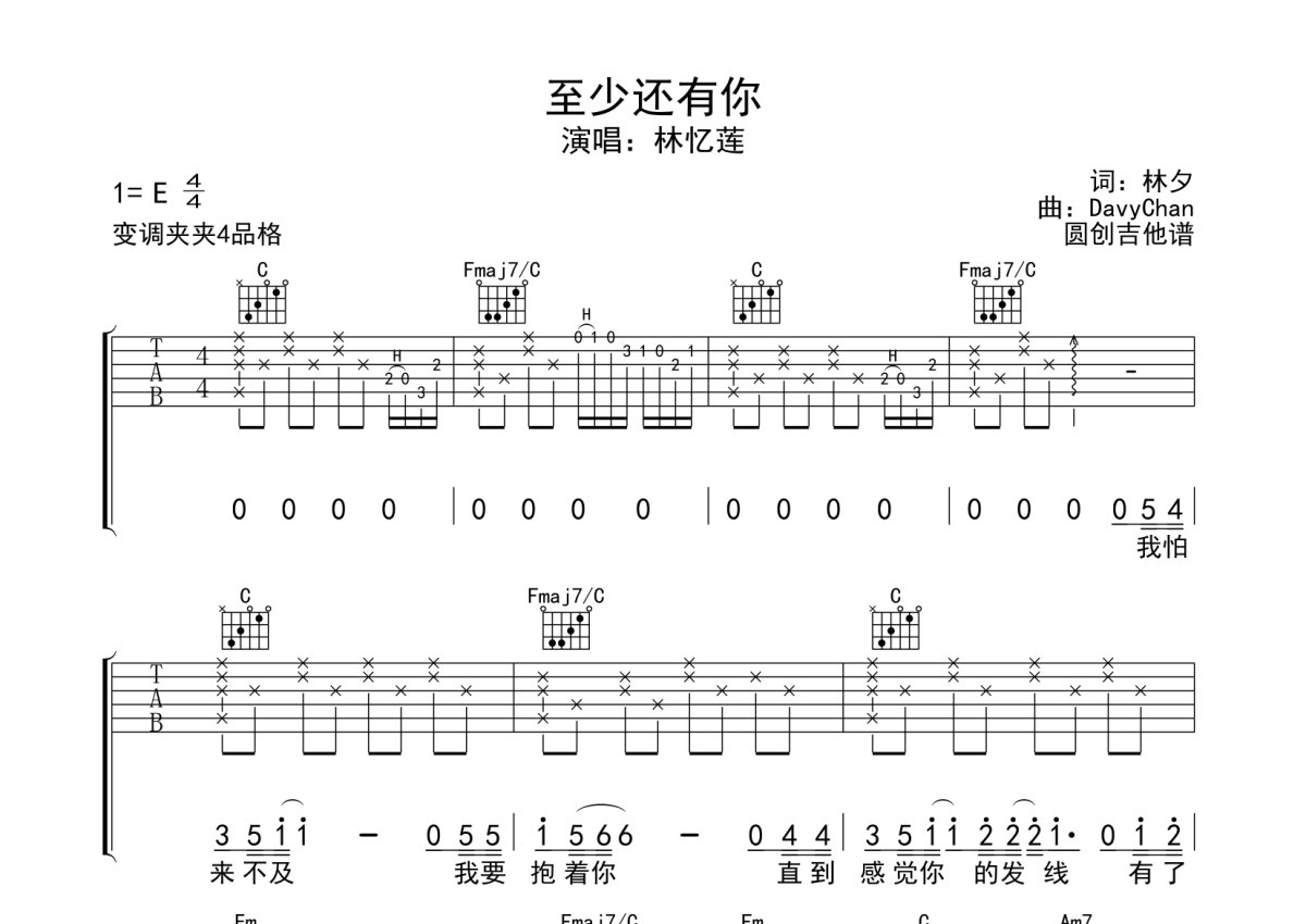 林忆莲《至少还有你》吉他谱 - C调弹唱六线谱