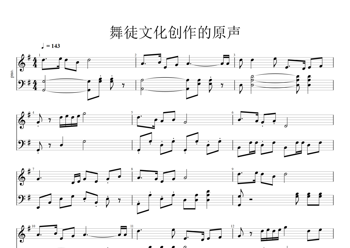 《舞徒文化创作的原声》是群星演唱的一首歌曲,本钢琴谱采用的是G调指法编配,这份钢琴谱共有两张高清图谱,图谱由 @Golder 编配上传,曲谱配备了相关的音频提供试听,使用这份舞徒文化创作的原声钢琴谱,可以让你更加方便地掌握这首歌曲的演奏技巧,快来尝试吧。群星《舞徒文化创作的原声》钢琴谱,Golder编配出品,共有2张高清图谱,免翻页排版设计。